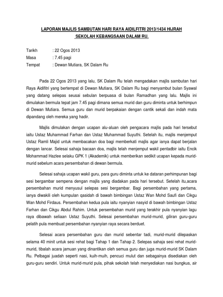 Laporan Majlis Sambutan Hari Raya Pdf